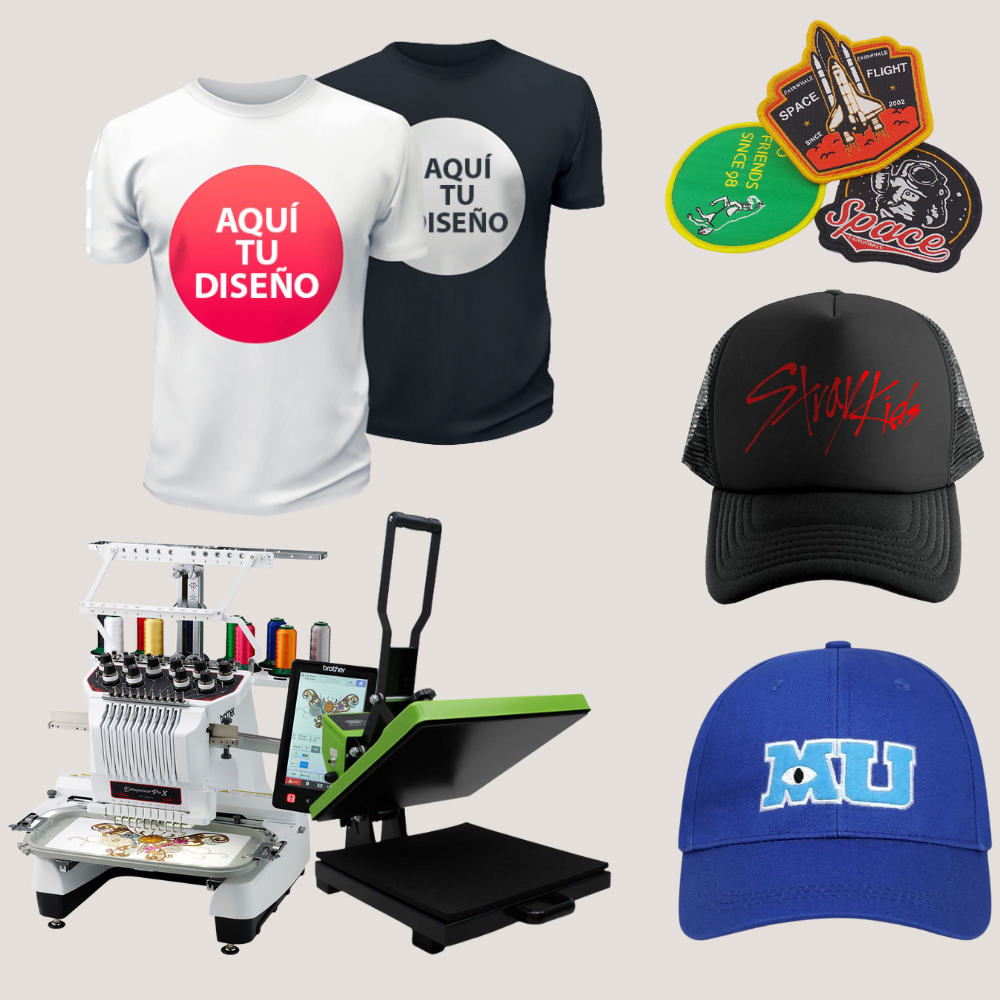 Ofrecemos una amplia variedad de personalización textil: estampados en vinilo, DTF textil y la opción de bordado para darle un acabado profesional y duradero a tus productos.