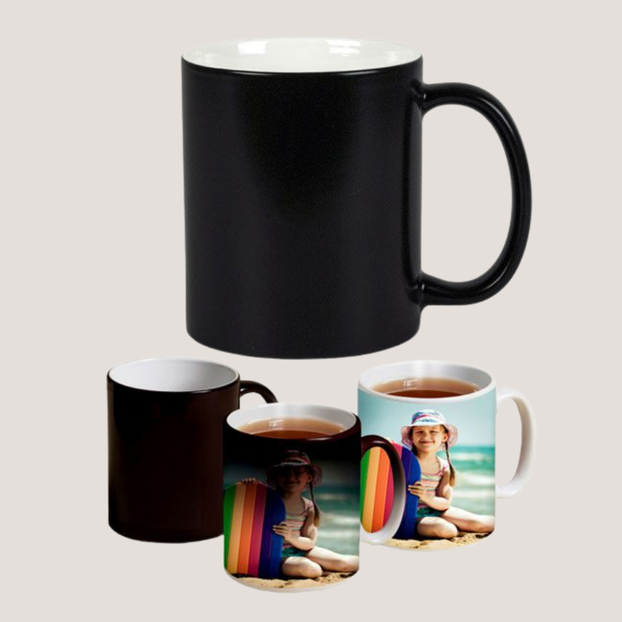 Tazón 11oz para sublimación, efecto mágico, con agua caliente se desvanece el color negro y aparece la imagen sublimada.