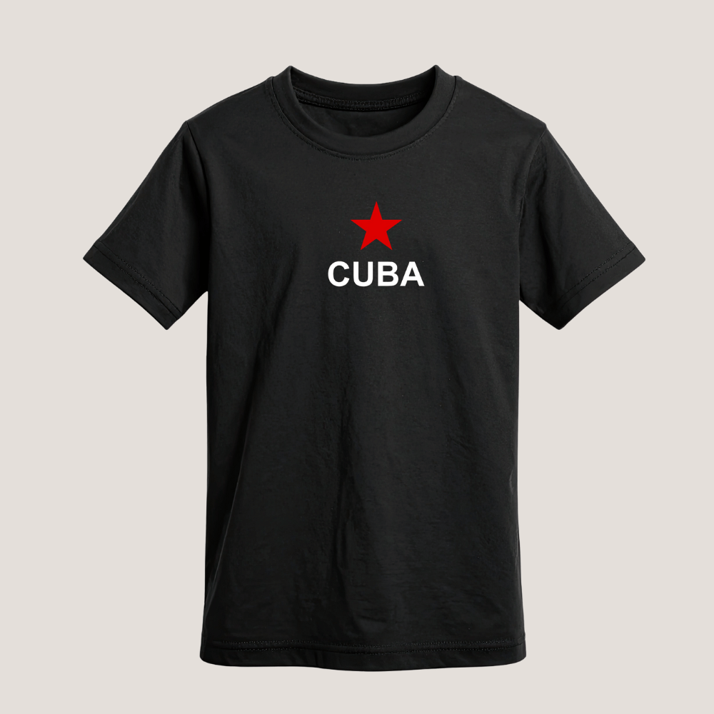 Polera minimalista con estrella roja y texto CUBA. Diseño sobrio, ideológico y directo. Ideal para estilo urbano simple.