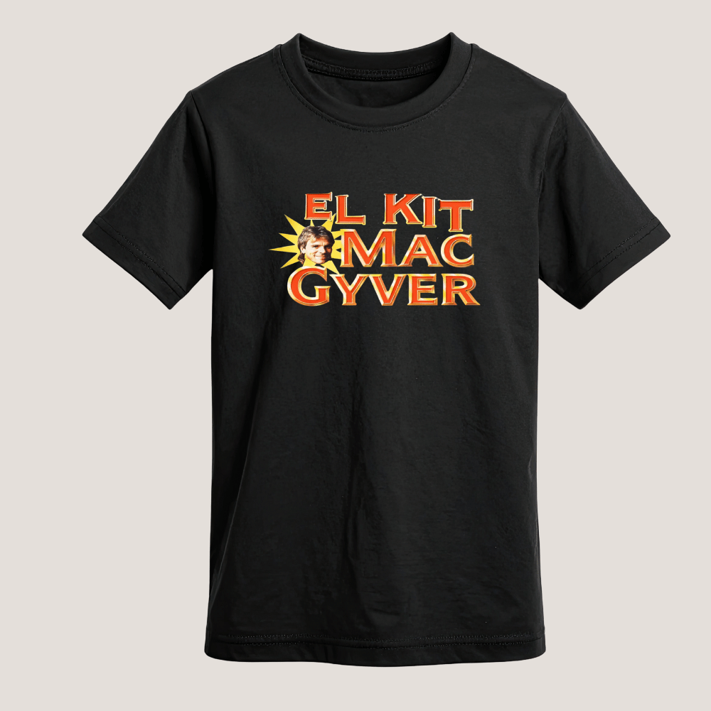Polera con diseño parodia de MacGyver. Nostalgia, cultura pop y humor gráfico clásico. Ideal para fans de series retro.