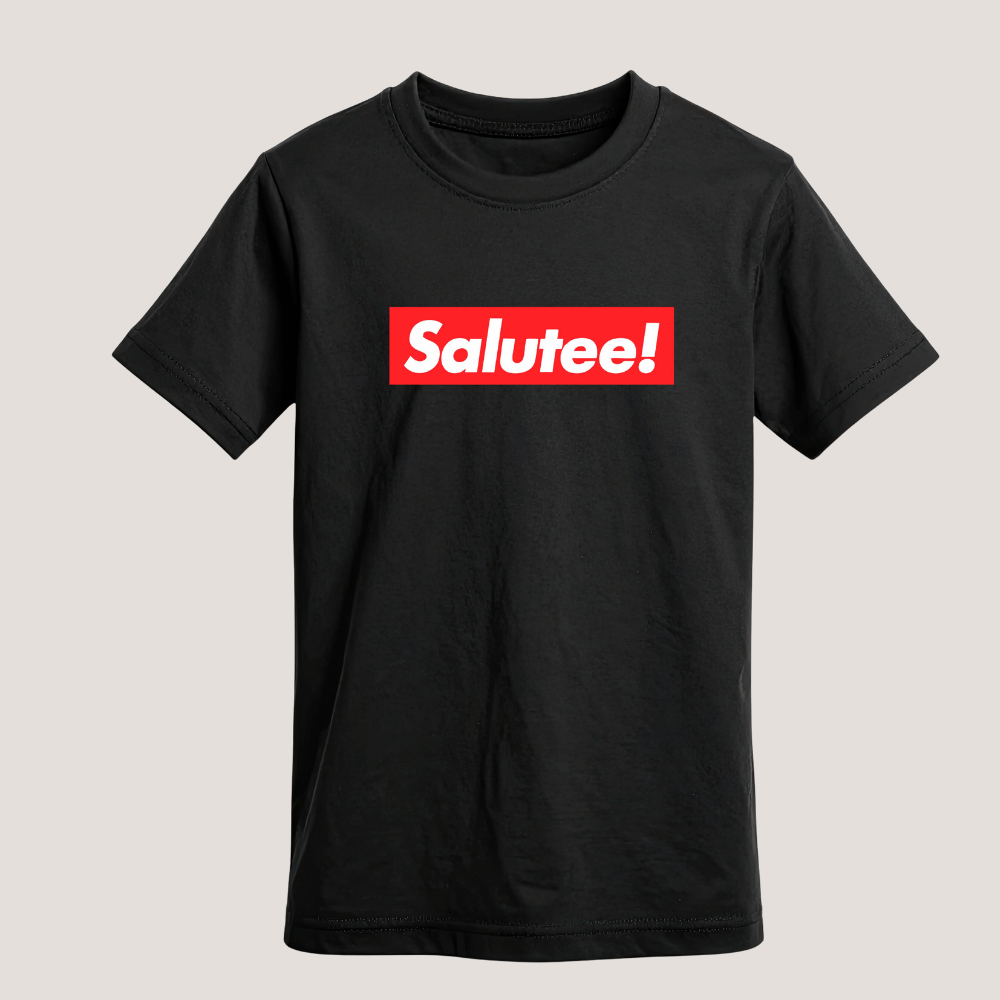 Polera con frase Salutee! en formato box logo. Diseño limpio, moderno y altamente usable.