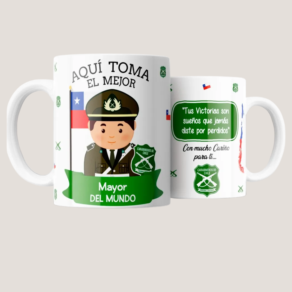 Celebra la trayectoria, liderazgo y compromiso de ese oficial con una taza personalizada inspirada en su rango y vocación de servicio.